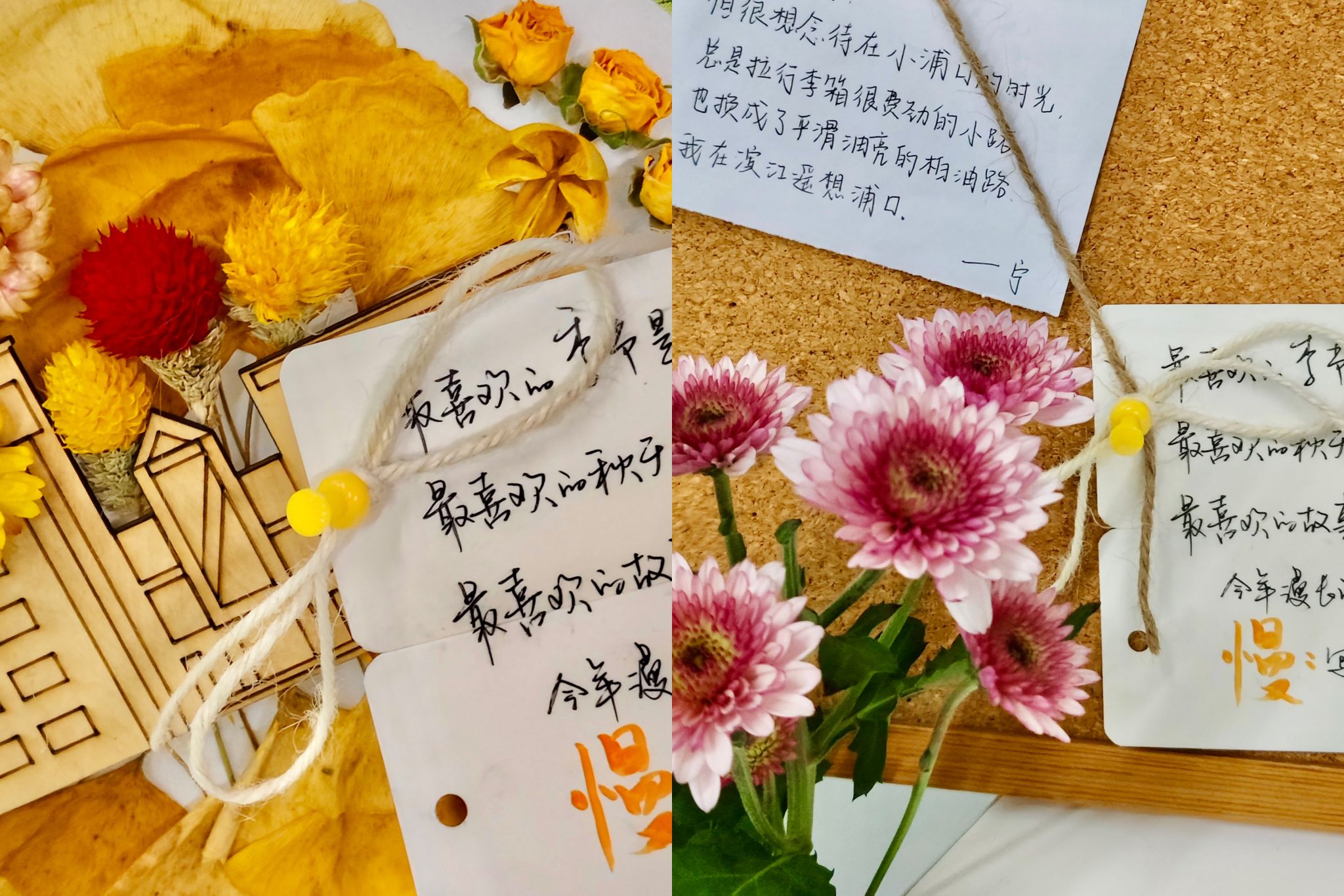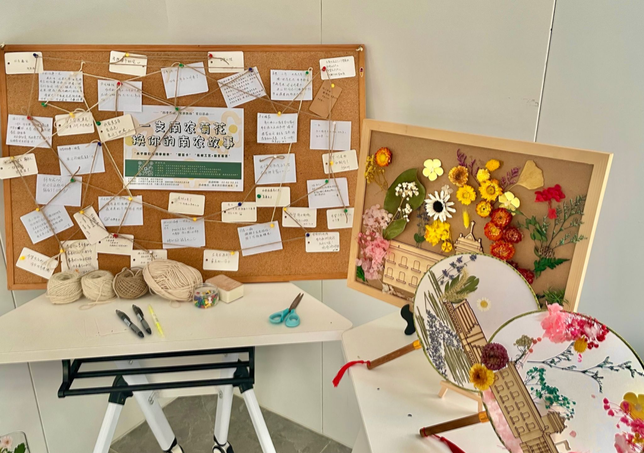 为了让更多的同学感受“四季”,党员们将创作的立体画作品搬进学生社区进行展览。通过“一支南农菊花换你的南农故事”活动,鼓励同学们将自己的“小趣事”“小成就”“小心愿”以便签纸的方式分享在留言板,通过讲述和分享自己身边的“南农故事”,共同绘制属于南农人的四季画卷!