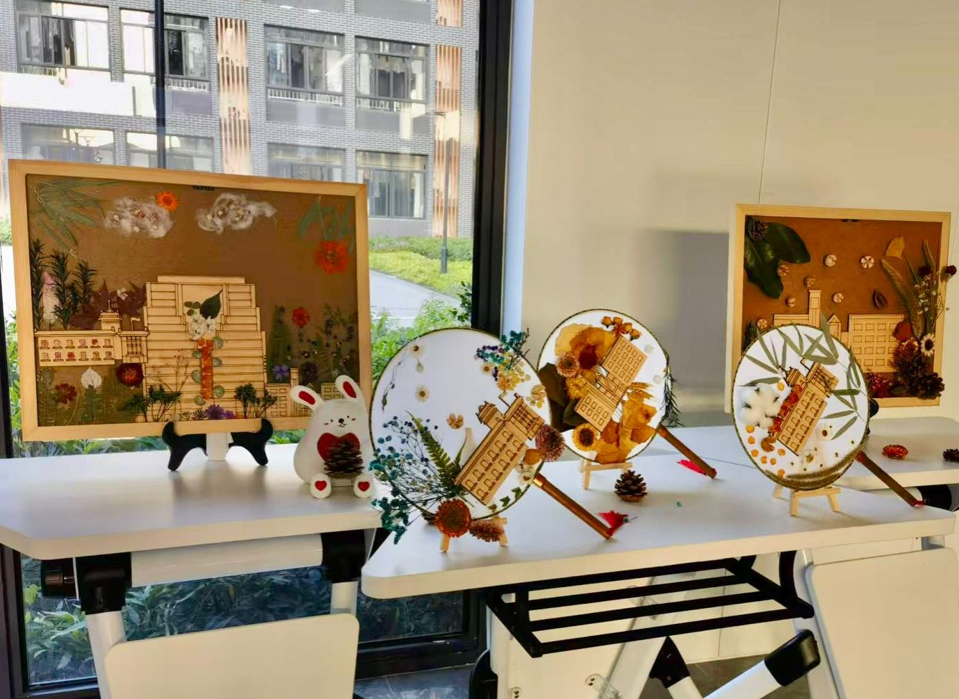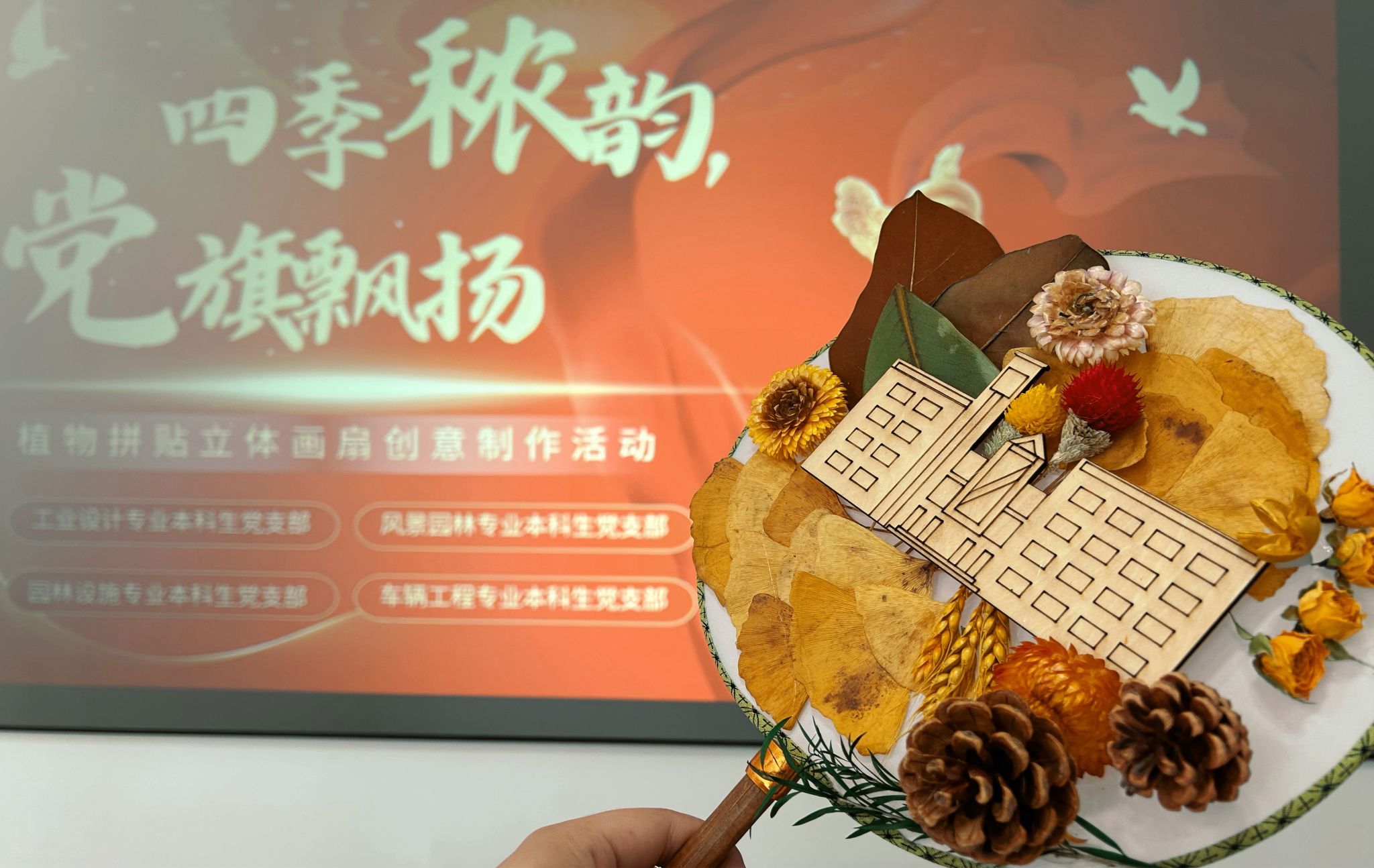 支部党员们还充分发挥想象和创意,将机械工艺的校园标志性建筑和菊花、棉花等农产品结合,手工制作团扇作品。一叶一瓣,一剪一贴,花瓣轻触,心中景致在扇面上跃然呈现,每一幅团扇作品都宛如自然的缩影,蕴含着同学们对校园生活的热爱和感悟。