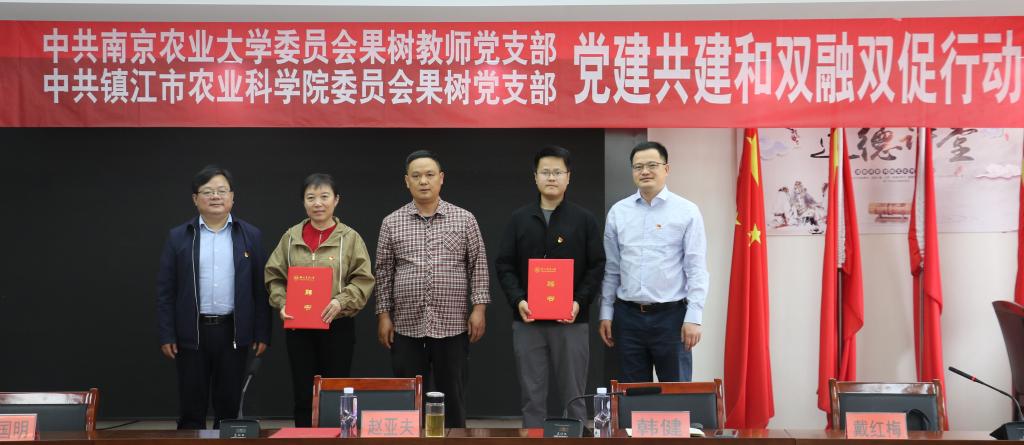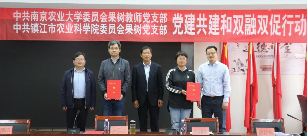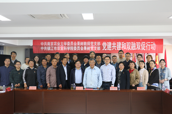 果树教师党支部书记高志红,镇江农科院果树室党支部书记万春雁以及双方教师党支部全体党员参加了活动。