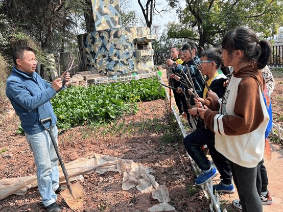 实验小学李宾副校长的带领下,大家来到了实验小学的后山,一起动手进行了无花果枝条的扦插实验。从种植环境的选择、扦插枝条的筛选,到枝条扦插、覆土浇水等所有步骤,均为学生们亲力亲为,亲自示范和教学。在此过程中,罗庆云老师引导学生们探索枝条扦插的方式方法,并在种植技术方面进行了相应指导,增强了学生们的思考和动手能力。