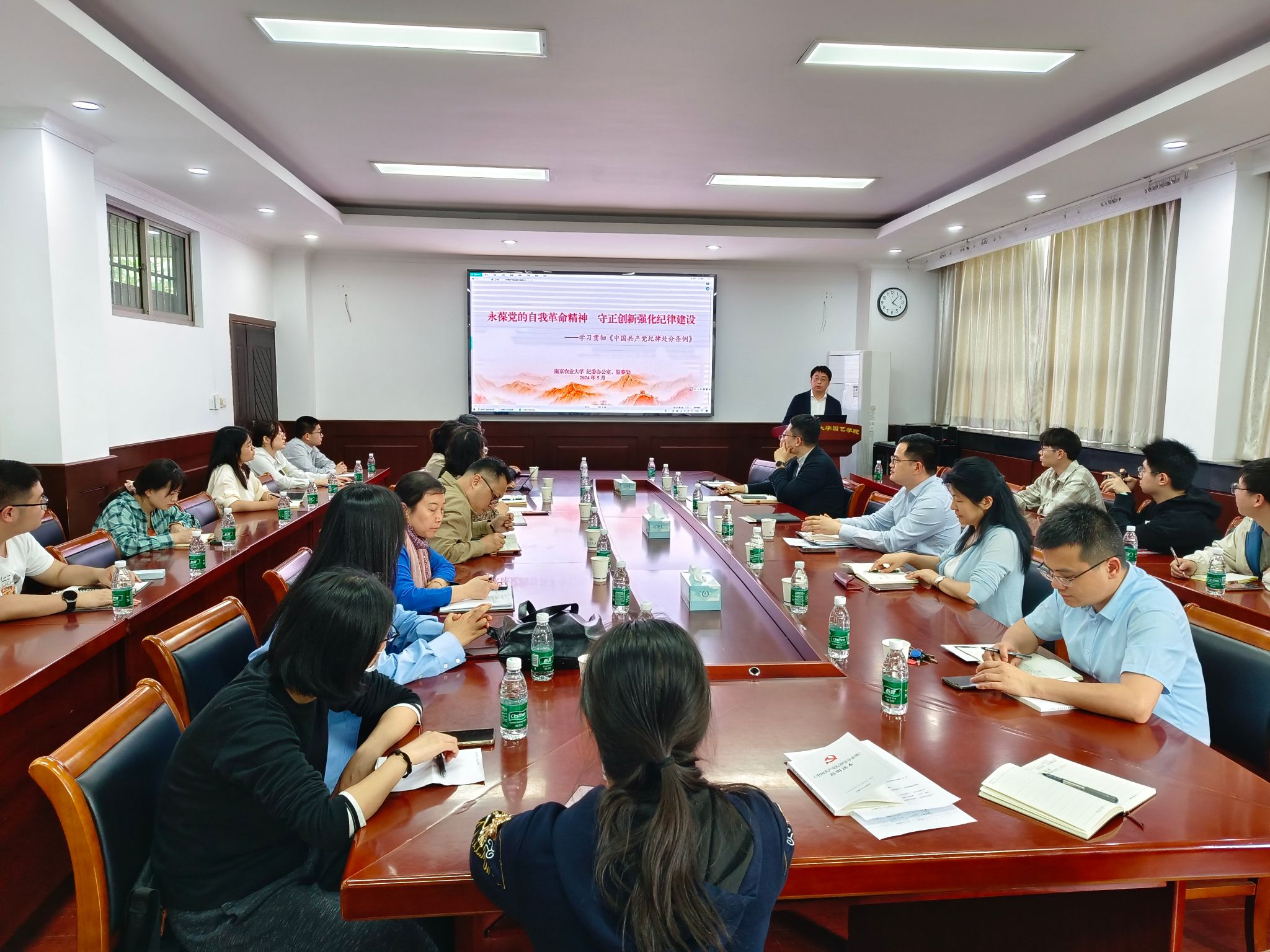 党委在生科楼B4003学术报告厅举办党纪学习教育专题辅导报告会暨院领导班子党纪学习教育读书班。学校监察处副处长、纪委办公室副主任梁立宽应邀做专题辅导报告。院领导班子全体成员、全体党支部书记参加报告会,会议由院党委书记韩健主持。