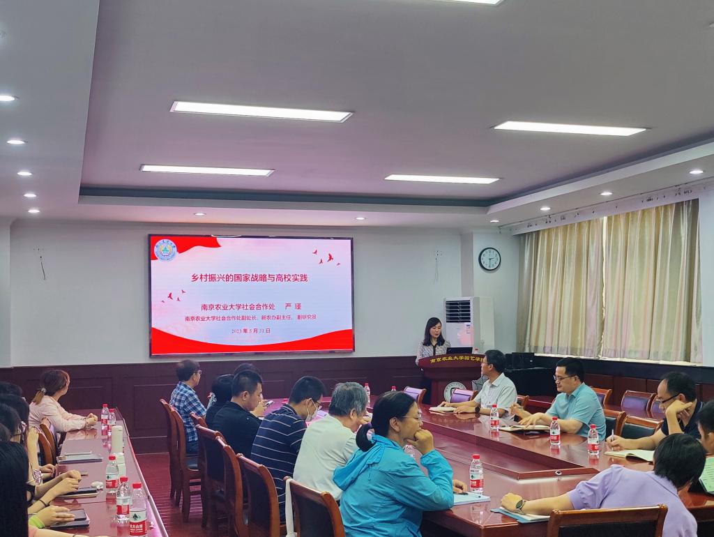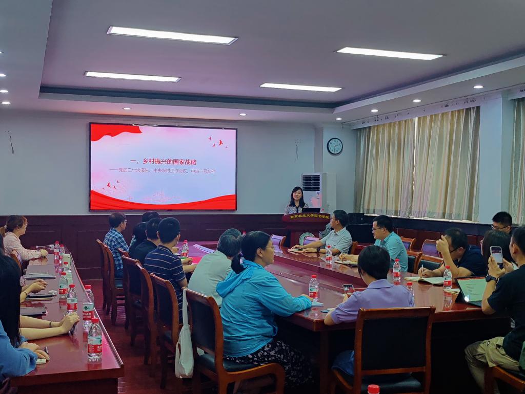 531日,电子竞技 党委邀请学校社会合作处副处长严瑾为学院师生党员作《乡村振兴的国家战略与高校实践》的党课报告。严瑾带领师生党员全面学习了党的二十大报告、中央农村工作会议、2023年中央一号文件精神中关于乡村振兴的重要论述,并从乡村振兴的国家战略、乡村振兴的高校实践以及社会服务的园艺担当等三个方面分享学习了习近平新时代中国特色社会主义思想指导下的乡村振兴国家战略,回顾了电子竞技 作为农业高校在新时代十年来开展定点帮扶与乡村振兴工作中的实践、贡献和成效,最后从践行主题教育、推动乡村振兴和社会服务等工作方面探讨了电子竞技 师生的责任担当。