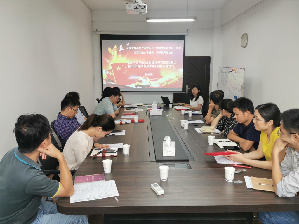 会上,陈素梅书记带领大家集中学习了“习近平给全国涉农高校的书记校长和专家代表的回信”。与会党员纷纷表示,习总书记的回信精神,使人深受鼓舞,增添了我们的干劲。作为涉农高校基层教育工者,倍感使命光荣,责任重大,今后,一定要以习总书记回信精神为指导,以立德树人为根本,以强农兴农为己任,传承南农人诚朴勤仁的精神,积极投身到脱贫攻坚和乡村振兴的事业中去。本次学习标志着双带工作室“不忘初心、牢记使命”第二轮主题教育学习的开始。