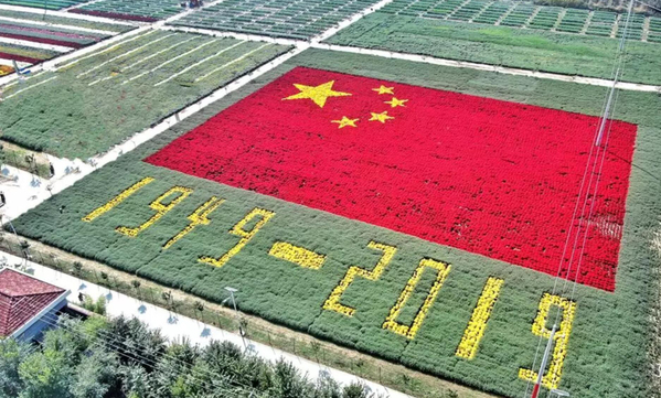 明月清风,秋香意浓。采菊东篱,悠见南山。与此同时,远在1000公里之外陕西省西安市鄠邑区祖庵镇,一面长60米,宽40米,同样由菊花铺就而成的国旗绽放在钟南山下。王海滨介绍,“鄠邑区祖庵镇菊花基地占地130亩,当地政府自2018年和我校菊花研究团队合作,开展菊花产业的合作,目前成绩斐然,仅去年一个月时间就有30万人前来参观,丰富了西安市民的物质和精神文明生活,以实际行动建设‘美丽中国’”。
