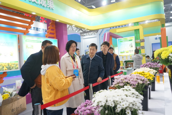 此次展会,我校菊花研发团队共展出“南农”系列切花菊新品种36个,收到了多方关注,吸引众多群众咨询、拍照并索要成果资料。全国政协副主席、民盟中央常务副主席陈晓光,省委书记胡和平、省长刘国中,杨凌示范区党工委书记李婧等参观考察了我校展位。