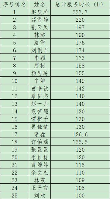 经个人申请,学院审核,以本年度志愿服务总时长为主要依据,拟推荐赵庆泽等25名同学申请电子竞技 优秀志愿者: