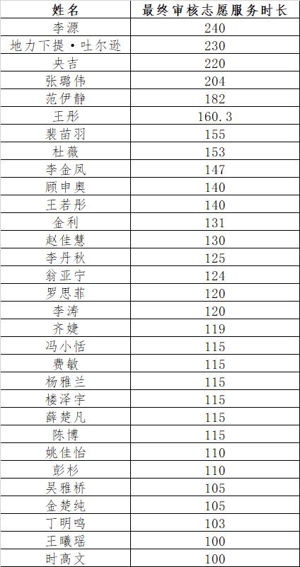 经个人申请,学院审核,以本年度志愿服务总时长为主要依据,拟表彰李源等同学电子竞技-电子竞技比分 优秀志愿者荣誉,具体名单如下: