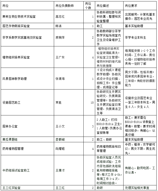 为培养同学们的工作能力和社会适应能力,全面提高综合素质,帮助我院家境困难、品学兼优的同学利用课余时间通过自己的劳动取得一定的报酬,更好的完成学业,现开展2016-2017学年第二学期我院勤工助学学生工作岗位的招聘工作,现将本学期勤工助学岗位招聘相关事宜通知如下: