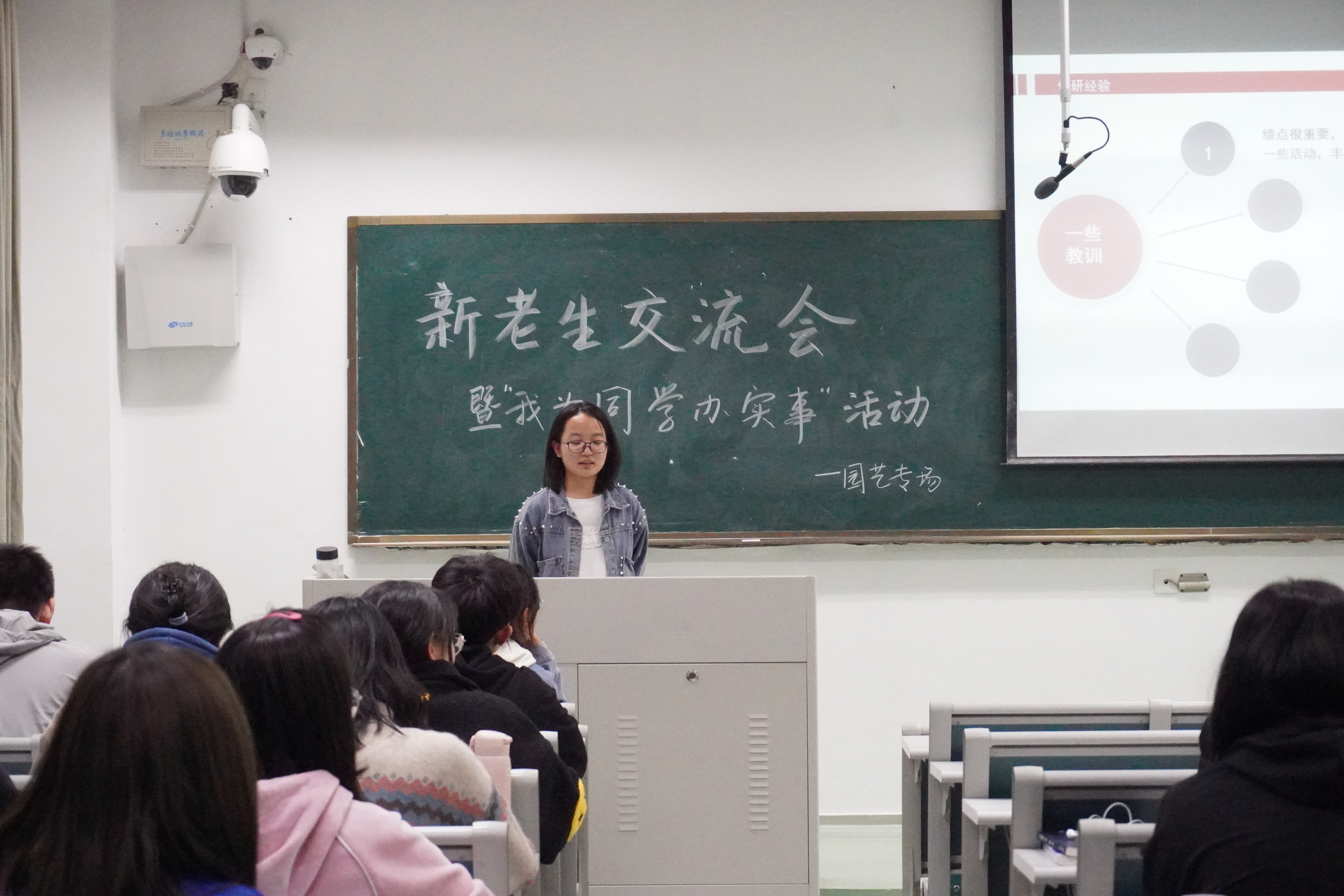 之后赵瑜涵同学和大家分享了自己大学的生活,大学生存指南以及保研的经验和入党收获。首先,赵瑜涵同学为大家展现了自己充实而精彩的大学生活,希望以此激励同学们勤勉致知并有所收获。随后,赵瑜涵结合自身心得分享了大学的几条生存指南,如重视学习、多参加活动、保持身体健康、及时规划总结和提高效率,希望帮助同学们尽快适应大学生活。之后,赵瑜涵同学详细介绍了保研的流程以及园艺专业学生党支部和入党的收获。最后,她以自己大一入学新生讲座上拍的一张“大学遗憾排行榜”做总结:认真走过的路都不会有遗憾,希望大家都拥有一个丰富精彩的大学四年。