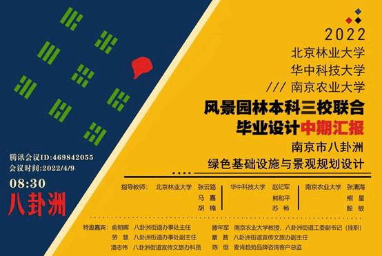 4月9日上午,由南京农业大学联合北京林业大学、华中科技大学共同参与的联合毕业设计“南京市八卦洲绿色基础设施与景观规划设计”中期汇报于线上顺利举行。来自三所院校的33位师生和南京八卦洲街道办事处主任余朝晖、街道工委副书记电子竞技