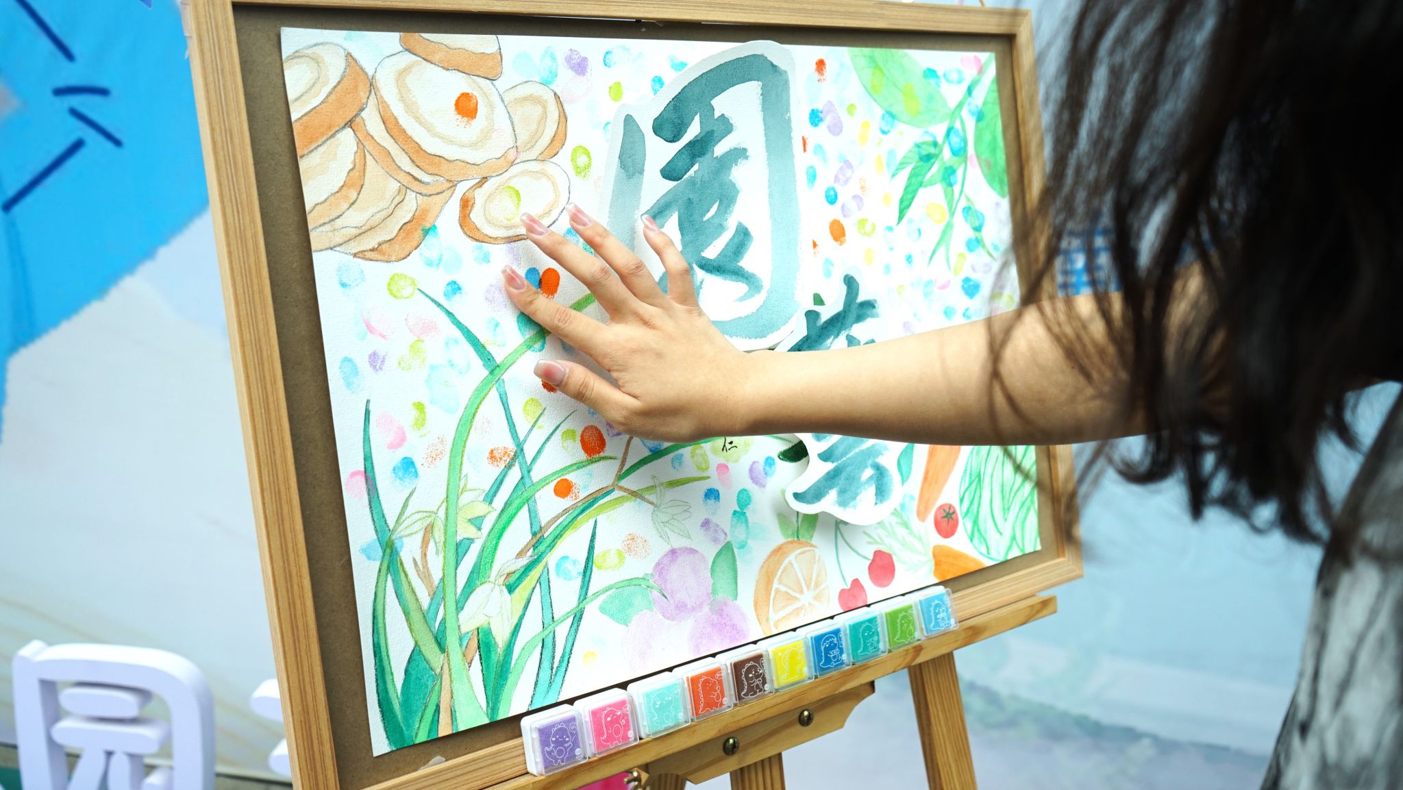 在园艺“飞船票”上摁下手印