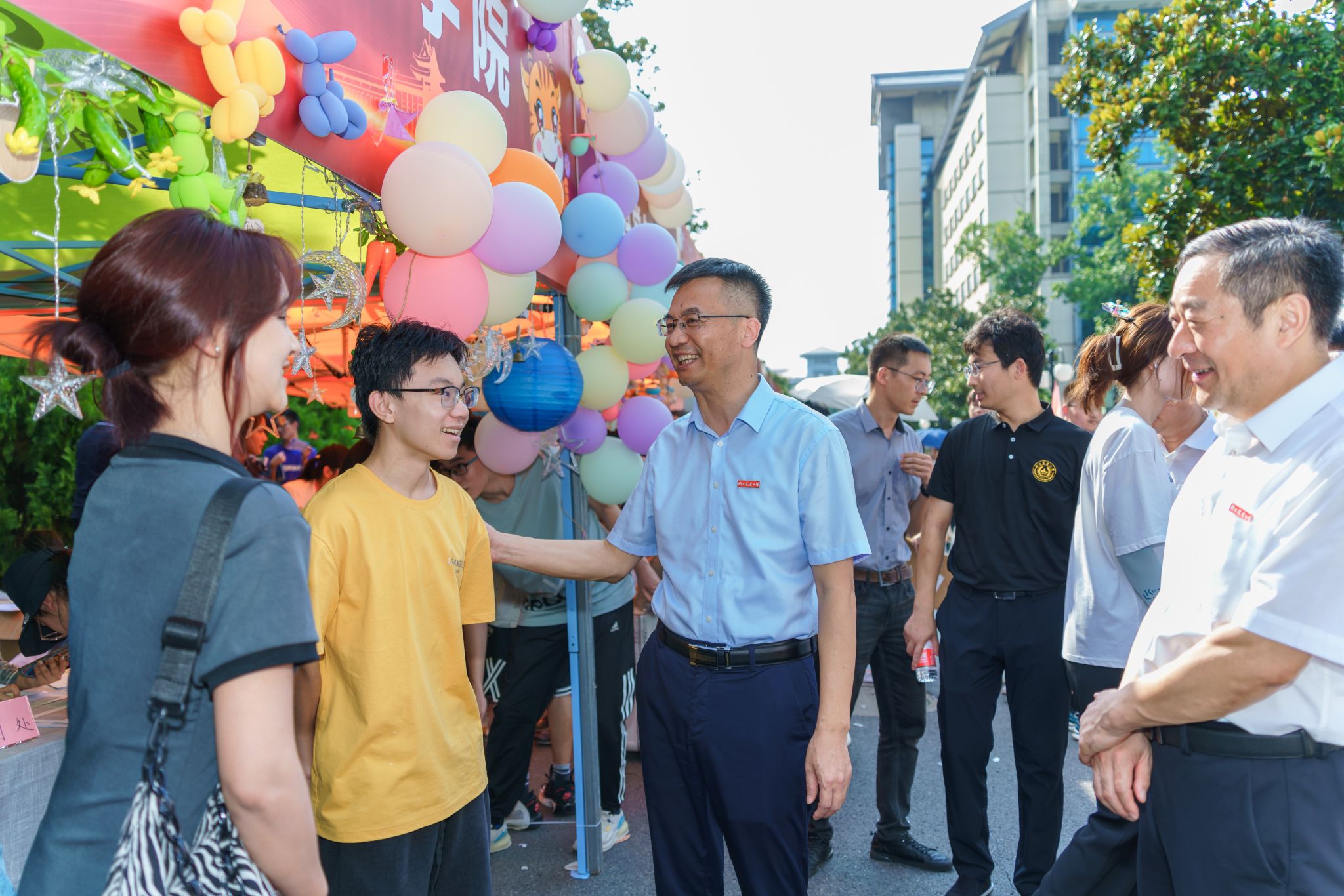 陈发棣校长一行来到活动现场视察,为新生送上真切祝愿,对学院的迎新工作表示肯定,对新生们寄予了殷切厚望。