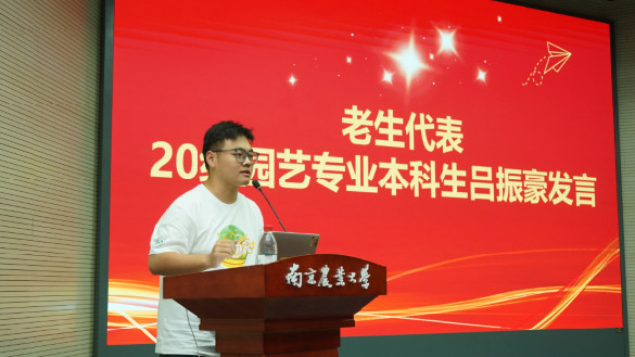 23级园艺专业本科生杨蔓茹作为新生代表发言,表达了新生们对于未来大学生活的憧憬和向往,同时也希望未来能够在知农、爱农情怀的浸润下,和同学们一起聆听诚朴勤仁的校训,一起畅想未来、描绘蓝图。