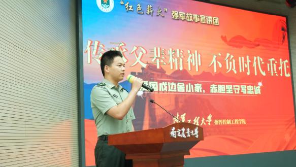 大会第二阶段邀请到陆军工程大学指挥控制工程学院的“红色薪火”强军故事宣讲团为新生们进行宣讲。宣讲团成员杨雅祺、李湘怡、王甜甜、张义心分别讲述自己与军人父亲军旅一生的故事,军人们在大漠深处,仰望星空,他们不忘初心,扎根边疆,这些感人肺腑的故事,使在场的同学和老师们都心生敬畏。学院希望通过这样的活动,让新生们能够心怀感恩之心,知道我们如今的幸福生活的来之不易。从力所能及的身边小事做起,热爱祖国,感恩父母,努力学习专业知识,知农爱农,强农兴农,在自己擅长领域,为祖国的发展贡献青春力量。