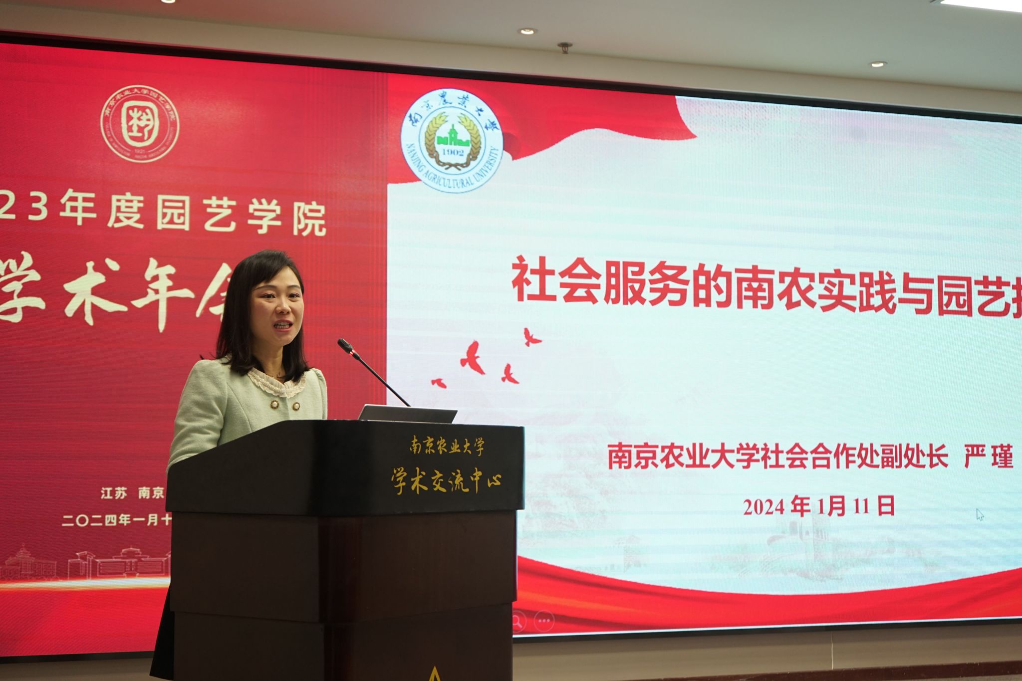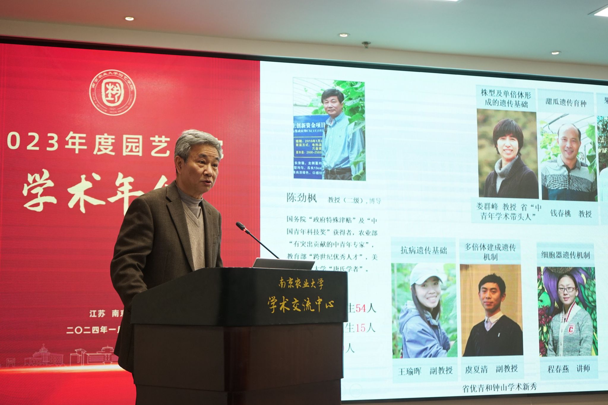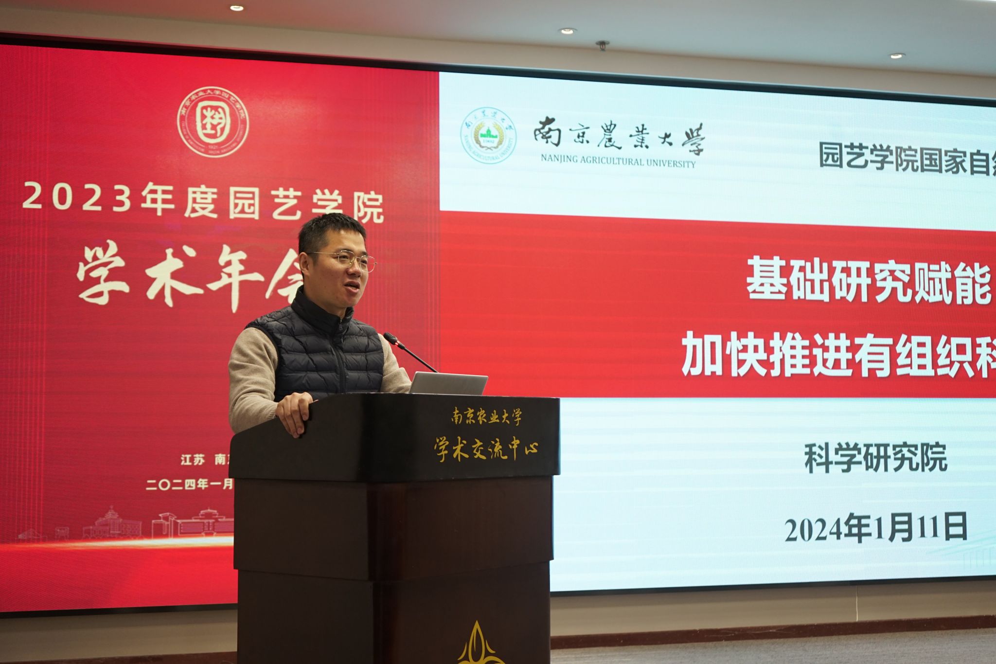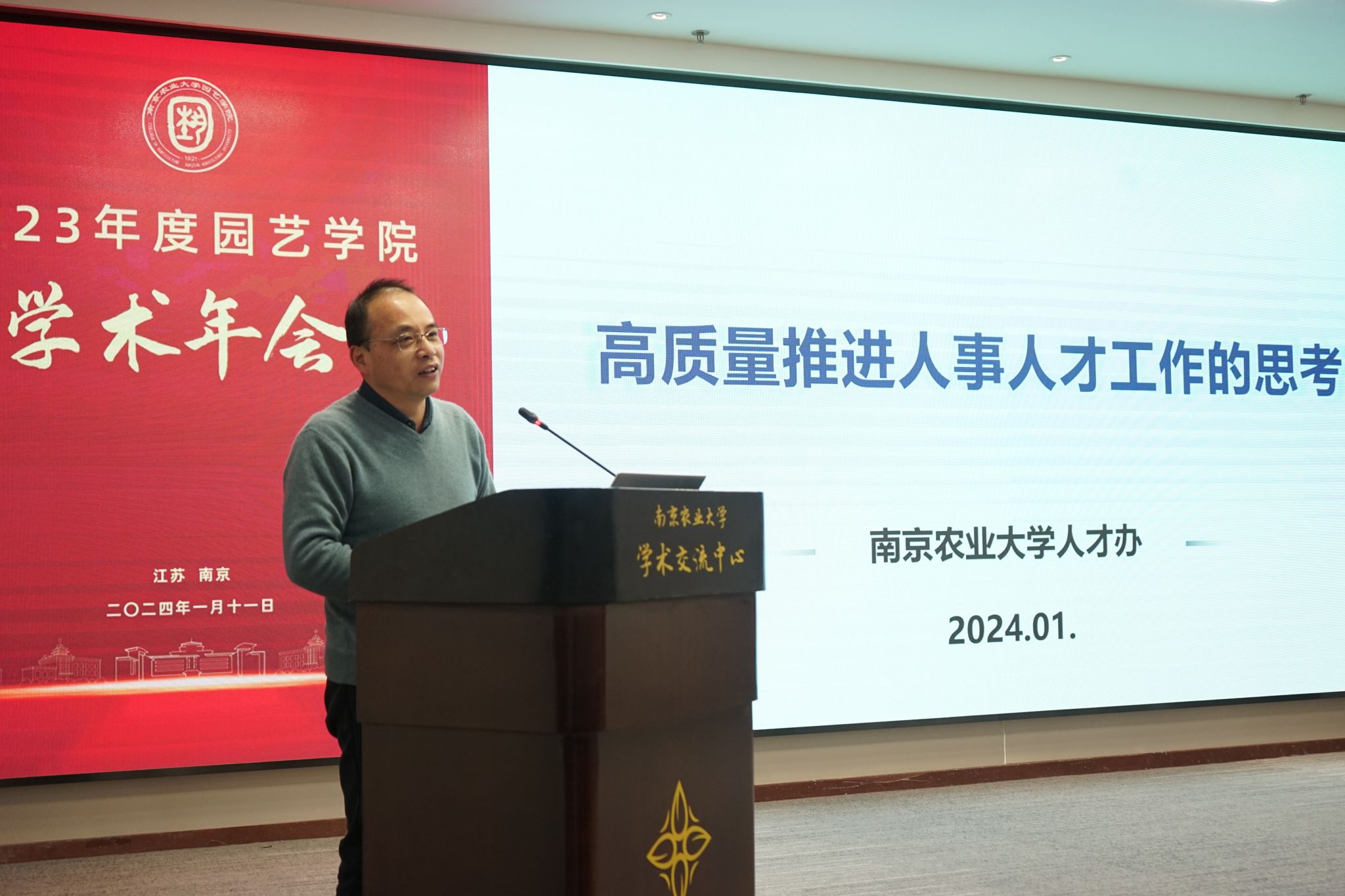 2023年度学术年会在我校学术交流中心六楼报告厅举行。校党委常委、副校长丁艳锋参加会议并致辞,校人事处处长邹建文、科学研究院副院长葛焱、社会合作处副处长严瑾应邀作专题报告。园艺院领导班子成员、全体教职工以及部分研究生参加会议。会议由园艺学党委书记韩健主持。