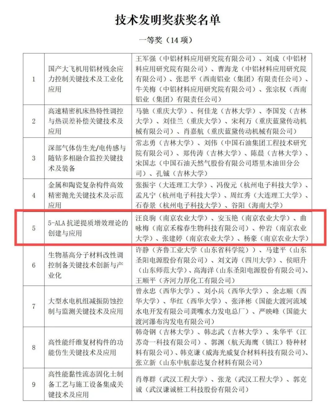 2013年,南京市321人才引进计划支持创办“南京禾稼春生物科技有限公司”,专门从事5-ALA产品研发与推广。我们将5-ALA研制成一种含氨基酸水溶性肥“金村秋”(农肥2017准字6991),并且创出品牌,多次获得政府嘉奖。