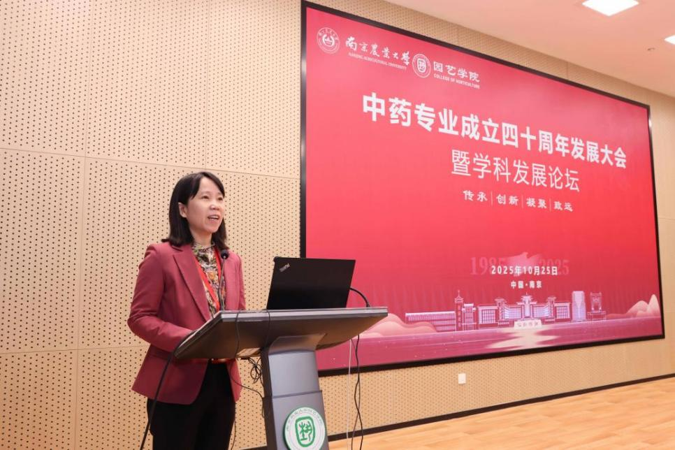 院长陈素梅向与会来宾和校友介绍了学院近年来在学科建设、人才培养、科技创新与社会服务等方面取得的成就。她表示,校友们在校时以南农为荣,毕业后南农以校友为耀,这种“双向奔赴”的朴素情感令人感动。她真诚欢迎校友常回家看看,重温青春记忆,感受校园新貌,并继续关心支持母校母院的建设发展,共同为中药产业与教育事业发展注入新动力。