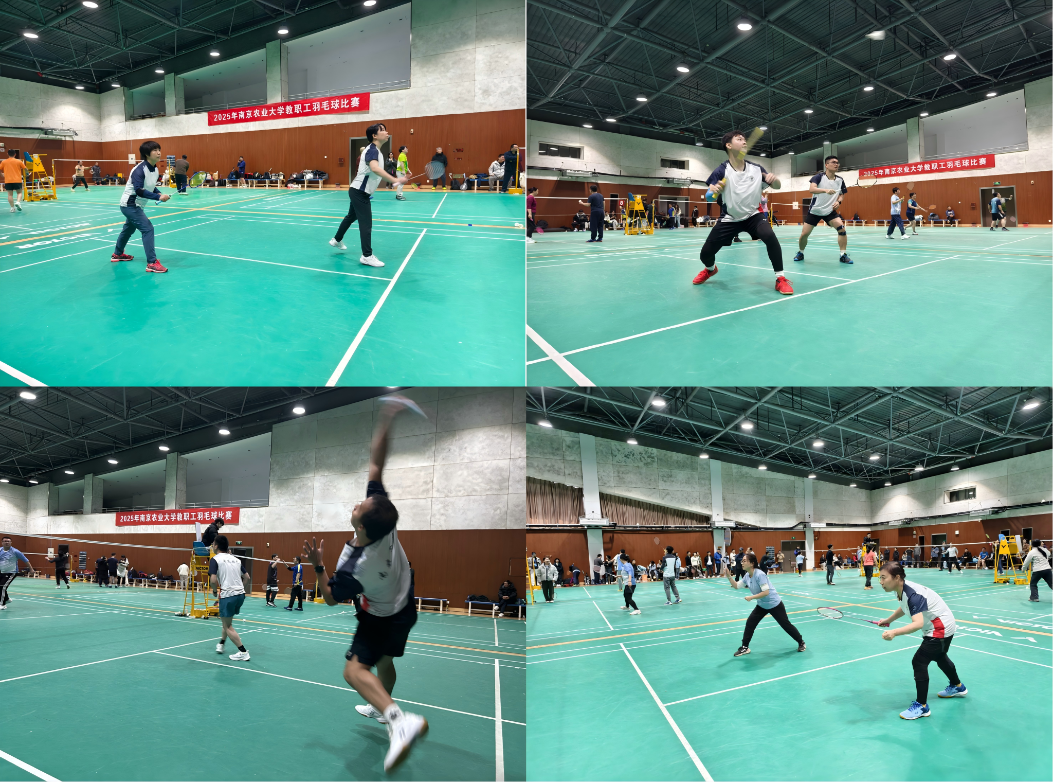 教职工羽毛球比赛激烈挥拍,全校24支劲旅齐聚一堂。我院精心组织两支参赛队伍,在赛场上奋勇拼搏,最终园艺一队势如破竹、勇夺亚军,创下我院历史最佳战绩;园艺二队团结协作、突出重围,成功闯入十六强,双双展现了我院教职工昂扬向上的精神风貌与强劲的团队凝聚力。