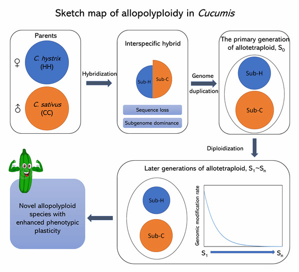 陈劲枫教授团队在《Advanced Science》(中文期刊名:《尖端科学》,2019年影响因子15.84)在线发表了研究论文“Whole-Genome Sequence of Synthesized Allopolyploids in CucumisReveal Insights into the Genome Evolution of Allopolyploidization”(doi:10.1002/advs.202004222)。该研究历经20多年,围绕甜瓜属人工异源四倍体新物种“金瓜”(gocumber)开展了系统深入研究,完成了世界首例人工合成异源多倍体全基因组测序,揭示并初步阐明了在异源多倍化物种形成三个阶段中,种间杂交的作用最为显著,以及亚基因组优势形成机制等多倍体研究重要科学问题,对于加强植物多倍化研究及作物育种利用具有重要意义。