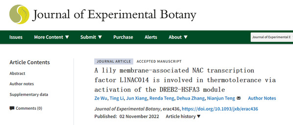 NAC转录因子广泛参与植物的逆境胁迫调控,而其在百合耐热性中的研究鲜有报道。11月2日,国际植物科学领域知名期刊Journal of Experimental Botany在线发表了电子竞技-电子竞技比分
