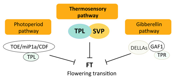 图2SVP-TPL在温敏路径调控开花的工作模式图