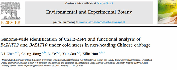 侯喜林教授团队题为“Genome-wide identification of C2H2-ZFPs and functional analysis of BcZAT12and BcZAT10under cold stress in non-heading Chinese cabbage/不结球白菜C2H2-ZFPs的全基因组鉴定及冷胁迫下BcZAT12和BcZAT10的功能分析”的研究论文。
