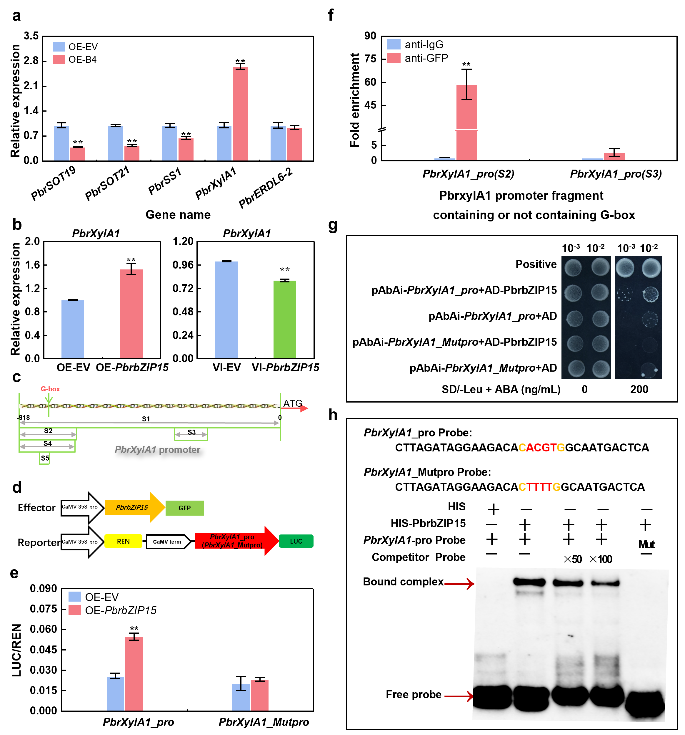PbrXylA1作为PbrbZIP15直接下游靶基因的试验验证