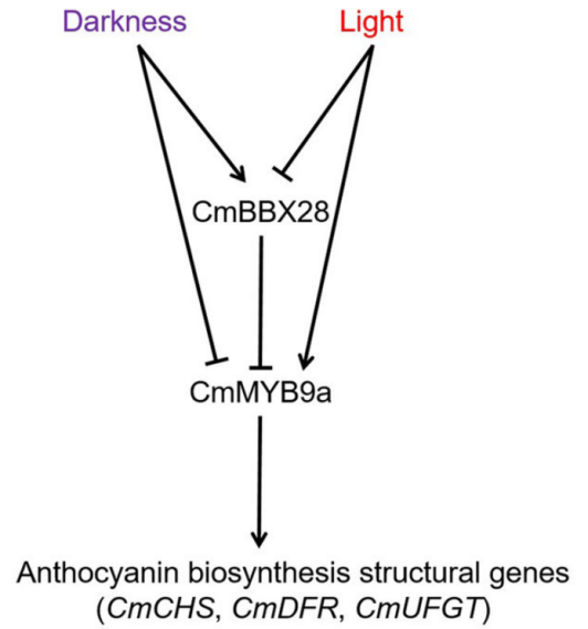 花色|菊花遗传与种质创新团队揭示CmBBX28-CmMYB9a分子模块在响应光照调控菊花花青苷生物合成及花瓣着色中的新机制