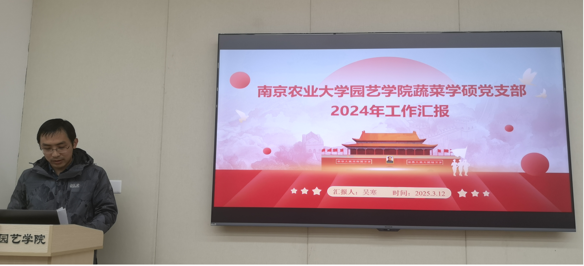 蔬菜学术硕士研究生党支部在园艺楼167会议室召开2024年度组织生活会暨民主评议党员大会。本次会议由党支部书记吴寒主持,支部联系领导校党委巡查工作办公室郭军洋副主任出席会议,支部全体党员参加。