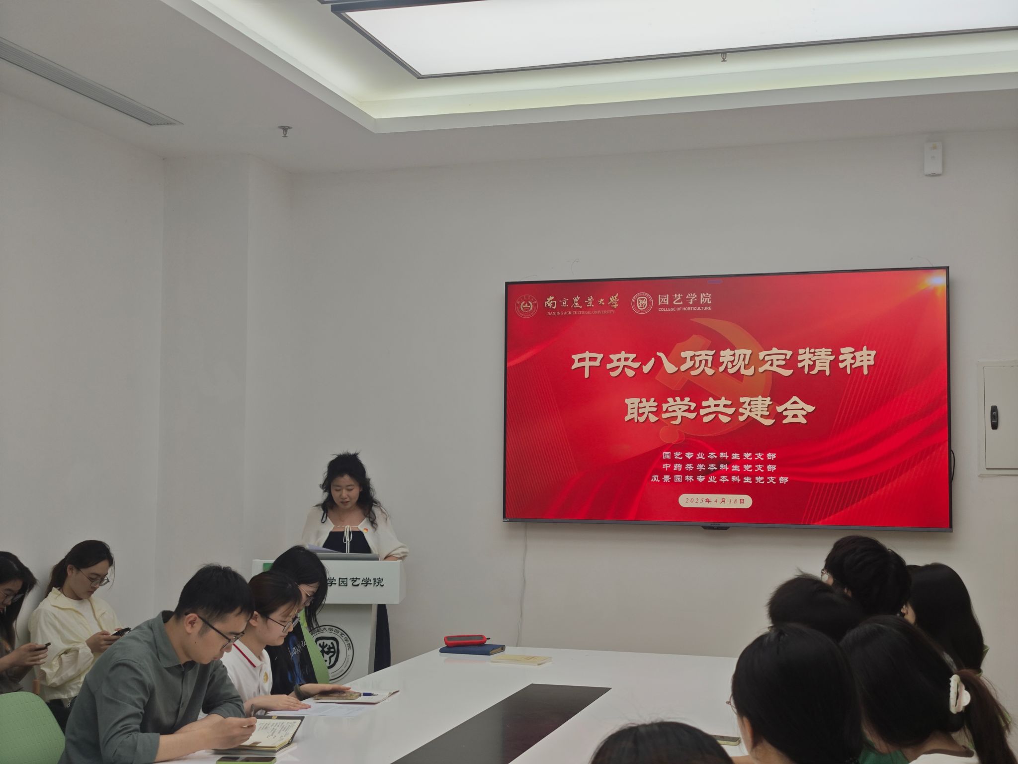 为深入学习贯彻中央八项规定精神,扎实推进党的作风建设,4月18日下午,电子竞技 园艺专业本科生党支部、中药茶学本科生党支部、风景园林专业本科生党支部在园艺楼134联合举办“中央八项规定‘纪’在心上”专题党课暨《习近平关于党的作风建设论述摘编》(以下简称《摘编》)学习研讨会。电子竞技 副院长张清海、院党委副书记石木舟出席指导,各党支部书记、副书记及党员代表参加活动。会议由园艺专业本科生党支部书记崔洋主持。