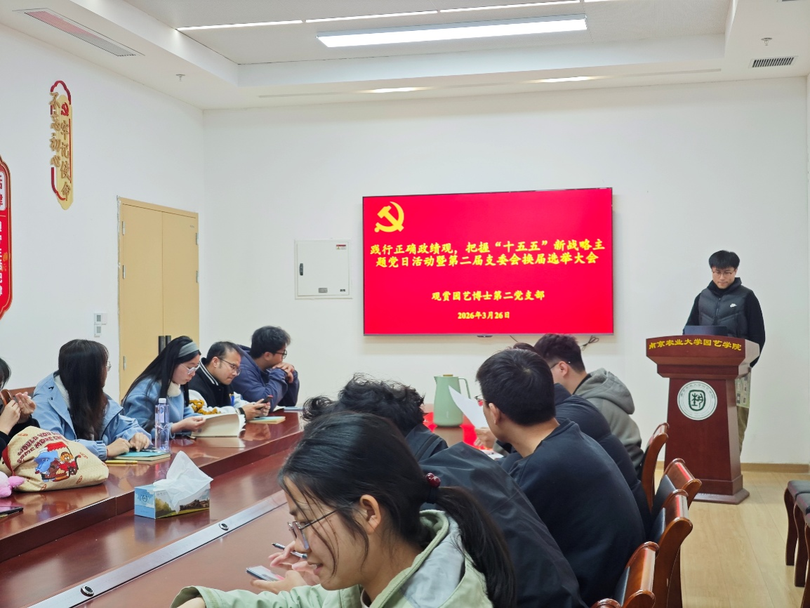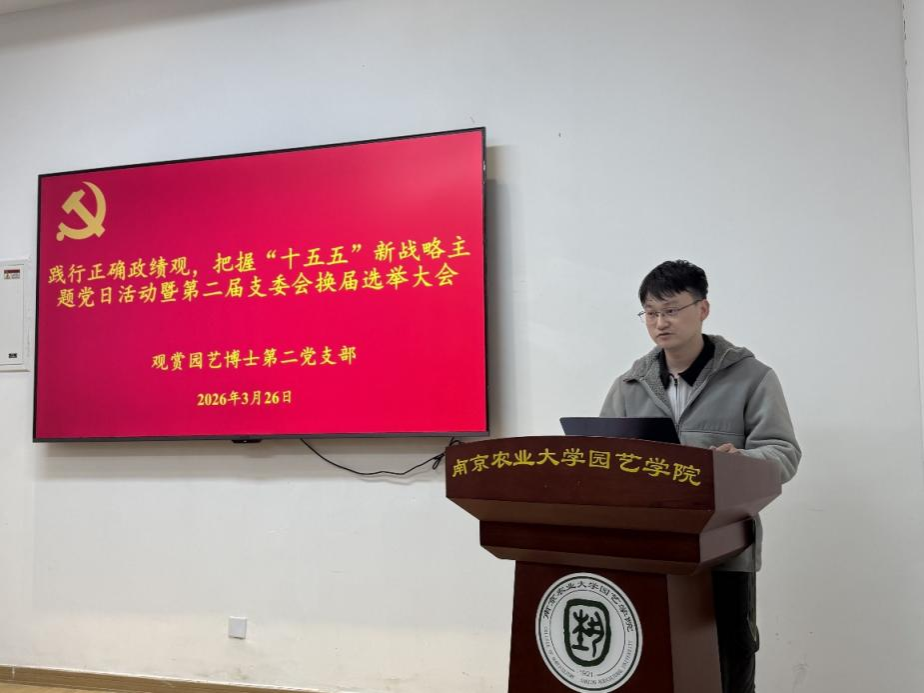 此次主题党日活动暨换届选举大会,既是一次思想淬炼和政治洗礼,也是推动基层党组织建设提质增效的重要举措。下一步,观赏园艺博士第二党支部将以新一届支委会为核心,持续深化理论学习,践行正确政绩观,紧扣国家“十五五”时期重大战略部署,发挥专业优势,强化使命担当,推动党建与科研深度融合,在服务国家发展中展现博士党员新作为。